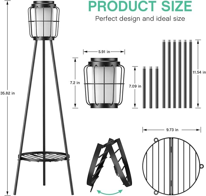 2 Pack Solar Lights Outdoor with Plant Stands, Solar Floor Lamp, Solar Powered Street Lights Metal Tripod Deck Lights for Garden Yard Pathway Driveway Porch