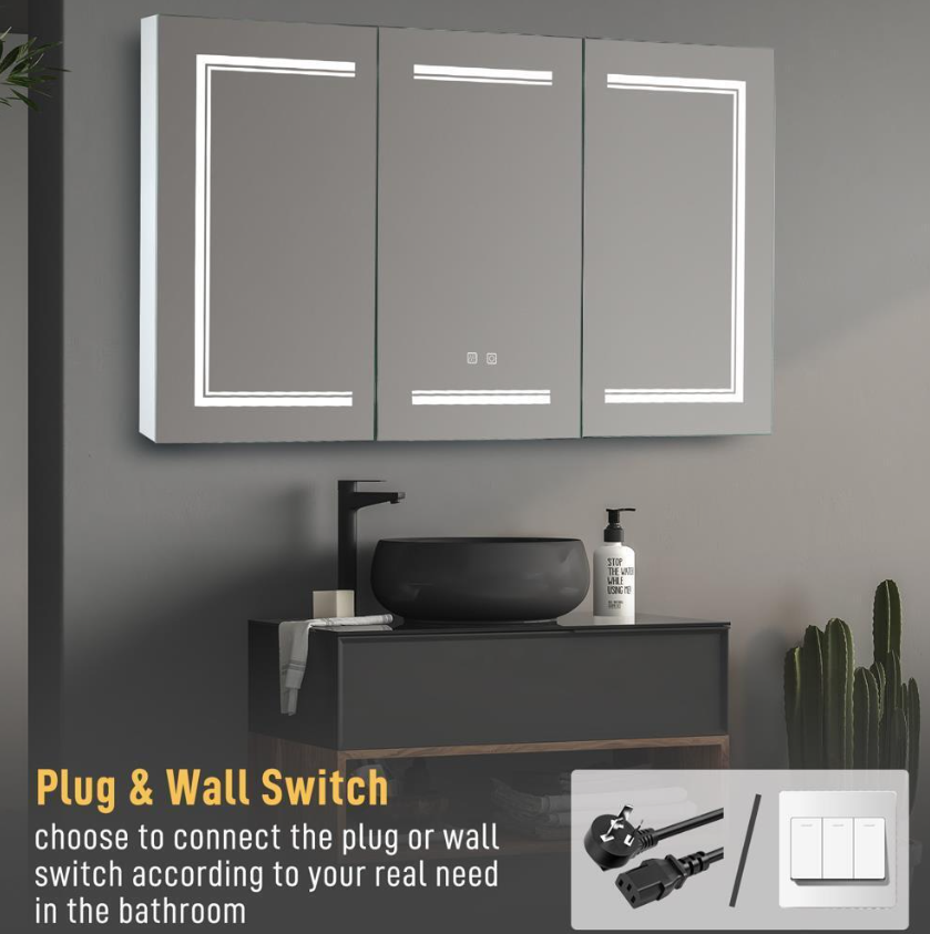 【Anti-fog】With build in defogger pad concealed inside the door ,controlled by individual switch. Rapidly heating up and providing steam free viewing.
