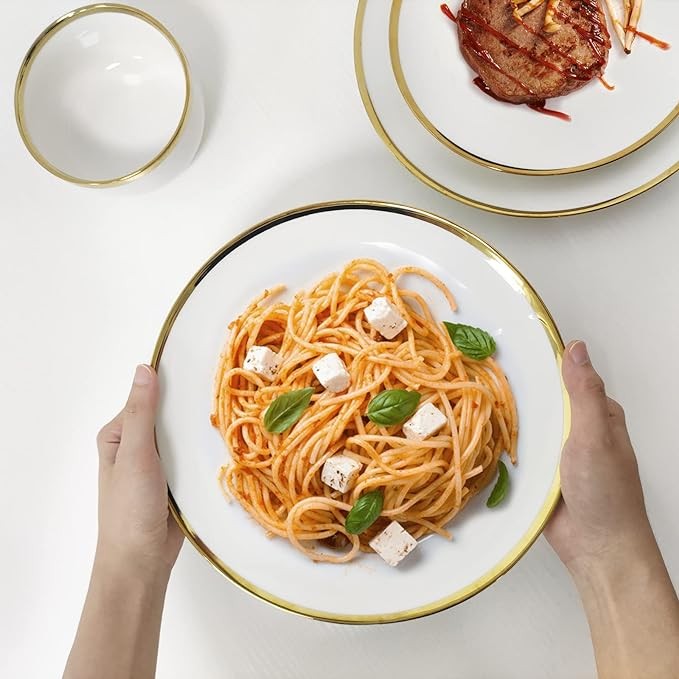 AXYWINBO® Dinnerware Sets,24-Piece Plates and Bowls Sets for 4,White Modern Porcelain Dish Set Contain Dinnerware & Accessories for Wedding and Housewarming Gifts