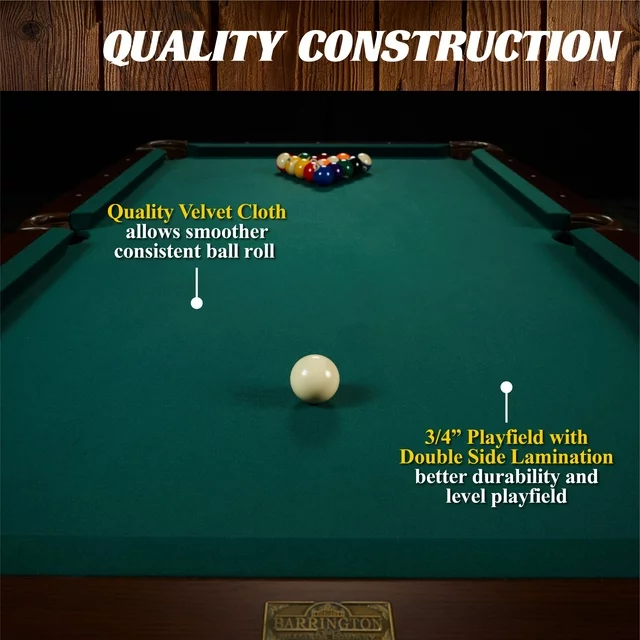 • This billiard table has a sleek polyester felt, which allows for a smooth and consistent ball roll