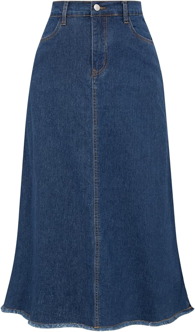 Elastic High Waist Skirts - Blue jean skirt for women with your favorite t-shirts for a casual chic vibe. Pair with blouses and blazers for a stylish look at the office. The long modest denim skirts for women are perfect ladies church skirts. Classic & Casual & Elegant.