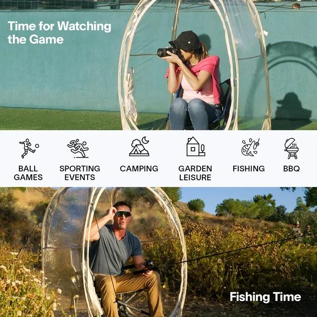 • Super clear 4 side view: this sports tent measures 40"x40"x62"H, bigger than similar products and comfortably fits 1 tall adult sitting inside. Made of super transparent PVC, it allows a clear, 540-degree view. Perfect for catching all outdoor sports action including football, baseball, soccer, lacrosse or for hobbies including fishing, photography, outdoor movies etc. Fully transparent PVC roof is perfect for night view and will make sure you don't miss any of those special moments!
