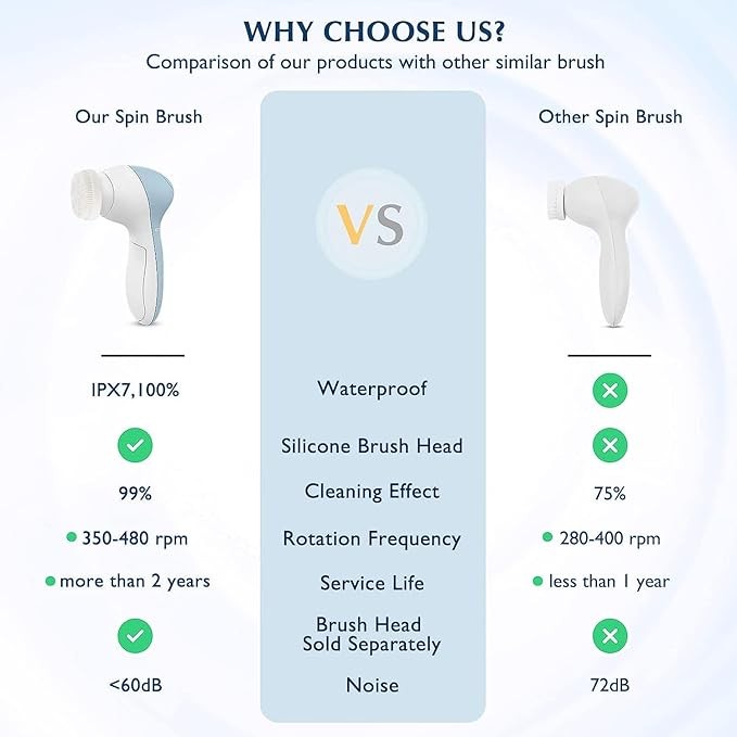 • SUPERIOR PERFORMANCE & DURABLE: We are committed to making the quality better through experimental comparison. The motor of our face brush far exceeds the market level, provides twice the power of regular spin brushes. It is equipped with three cleansing bristle brush heads for replacement to ensure hygienic use as well as a long service life to make your skin healthier