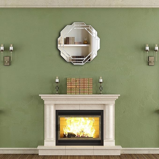 SOPHISTICATED DESIGN: The decorative mirror is designed with specified small polished slices mirror around the rim.Each edge is carefully beveled. It is sleek, modern and clean in the light.Our solid wood backing design reinforce the product,which is more safety and stable than others.