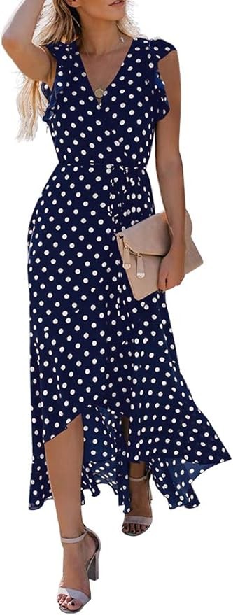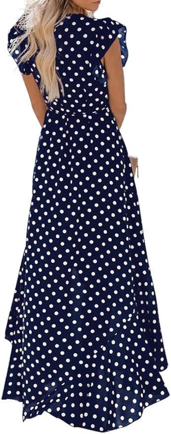 Features: Floor length summer floral print Maxi dress, you will look vibrant and alive, stylish and elegant in it. Cross v neck, ruffle cap sleeves, short sleeves, elastic waistband. Slim fit will show off your shapely curves well. Irregular high low hemline, as if the lotus leaf is swaying, wearing it will want to start a romantic journey.