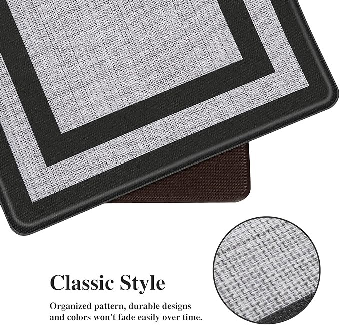 • ?[Comfortable] The 0.40-inches anti-fatigue kitchen mats are ergonomically engineered to provide a perfect blend of soft texture and firm support .Standing on it feels like walking on a firm but soft cloud.