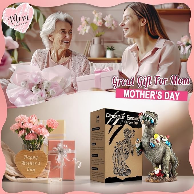 SOWSUN Garden Gnomes Statues Yard Decorations Outdoor Garden Decor, 14” Dinosaur Gnomes Garden Statues, Patio, Lawn Ornament, Gifts for Women, Mom for Mothers Day