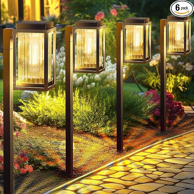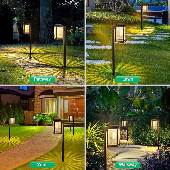 • 【Durable & Unique Solar Pathway Lights Outdoor】: Upgraded with a modern stripe transparent square shade, filament bulb, and strong stake, our solar landscape lights outdoor are more durable and beautiful. Perfect for pathways, lawns, walkways, and gardens, these pathway lights solar powered provide both lighting and decoration. Enhance your garden's landscape with these outdoor solar lights, lighting up your path home in a unique way.