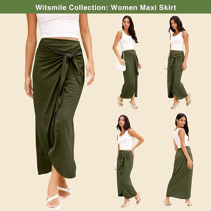 Pair the high-rise maxi skirt with a boho crop top for a elegant worthy look! Lightweight knit fabric of pencil skirts for women long length dances from the high, banded waist into a cascading maxi skirt with ruched split wrap. Plus loafers, high heels, even sports shoes to show different styles.